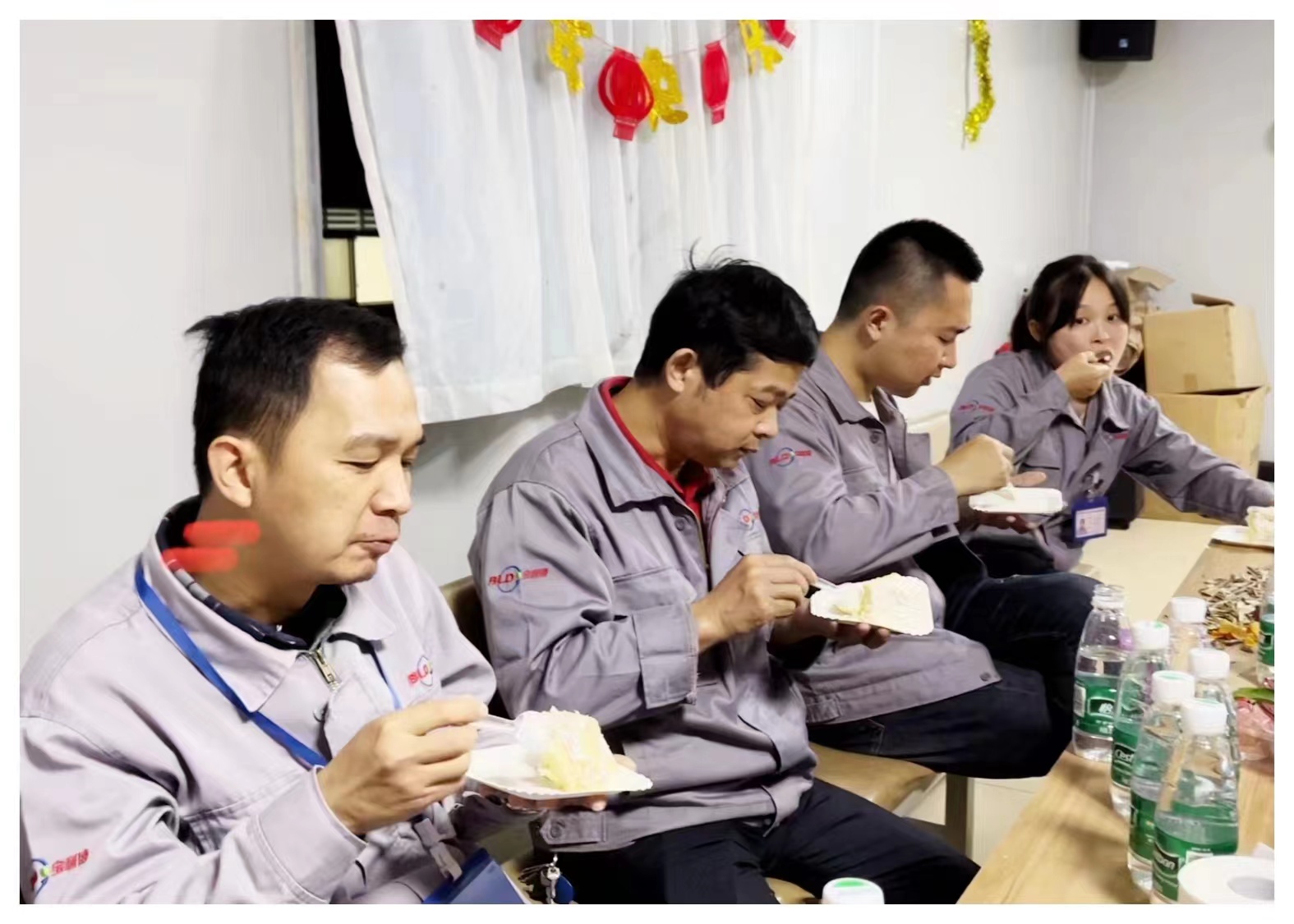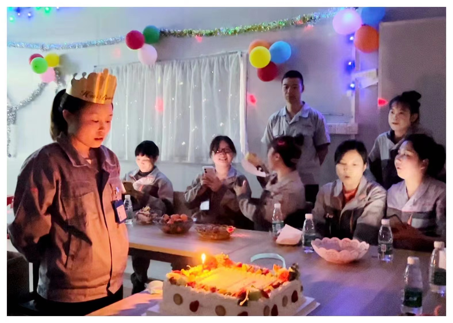 罗总助讲话完毕,进入生日会的员工寿星自我介绍与才艺表演、抢凳子游戏环节,在IT设备的支持下,现场的员工自由地唱歌、参加游戏,掌声与欢乐的笑声交织在一起。接下来,进入生日会的重要环节:许愿望、吹蜡烛、吃蛋糕、分发生日贺卡和礼物。在欢快的生日快乐歌声中,工作人员在会场中间准备好点燃蜡烛的大蛋糕,由于生日人数较多,主持人选出了生日靠近24日的寿星作为代表进行吹蜡烛,所有寿星齐唱生日快乐歌后,代表一口气把蛋糕上的蜡烛吹灭。在工作人员为寿星们分蛋糕之后,还为每位准备了精美的生日贺卡和生日礼物,公司工会制作了本次集体生日会的短视频记录精彩瞬间,聚焦的镜头留下了本次生日会寿星们的身影,为这次生日会画上了一个的句号。镜头上同事们欢快的笑脸,正是公司构筑一个充满关爱的宝利德职工之家的温馨画面。