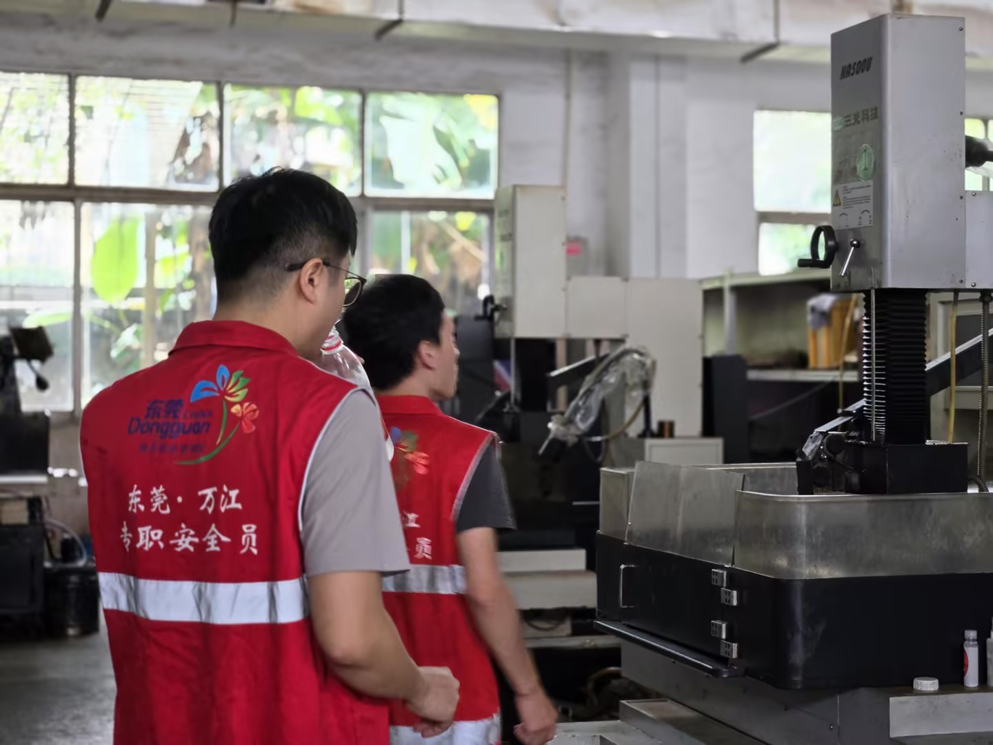 本次专项检查,万江街道陈书记也莅临我公司,亲自踏勘了工程部、模具部、机加工车间及仓库等关键区域,重点检查了消防通道是否畅通无阻、消防设施(包括消防栓、灭火器、消防泵站等)是否完备有效。陈书记的细致入微,不仅体现了上级部门对我公司安全生产工作的高度重视,也为我公司进一步完善消防安全管理体系指明了方向。