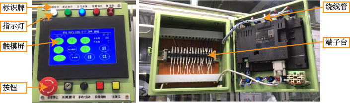 2、操作箱配线 2.1 操作箱内必须布置接线端子台; 2.2 外部电源、信号的连接必须通过端子台进行; 2.3 触摸屏、按钮、指示灯的配线整齐有序,必须使用绕线管缠好,面板与操作箱内可移动两端固定;