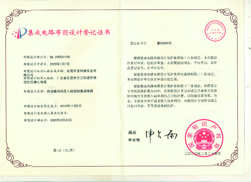 布图设计登记号:BS.205501109